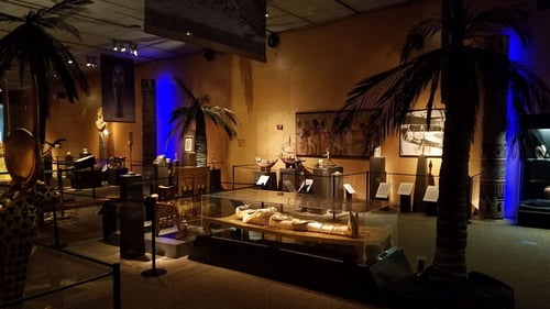 They offer exhibits including the Tutankhamun Exhibit, Paleo Exhibit, Faces Of Africa Exhibit, and Vessels of the Gods.