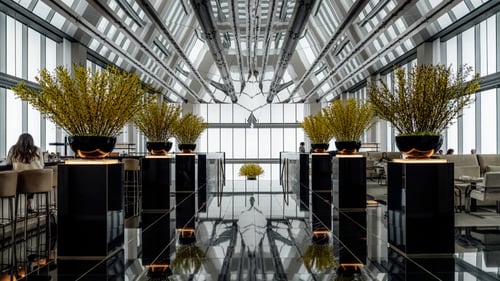 My girlfriend wanted to come here to watch the sunset for her birthday, and it turned out to be a great choice. Since it was the weekend, we had to wait in the lobby downstairs for about 15–20 minutes. Luckily, we made it up just in time to catch the sunset and take some amazing photos. We were also fortunate enough to find seats at the bar, but if you want guaranteed seating, it’s definitely better to make a reservation in the main seating area.
