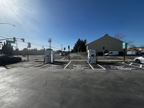 This is a good 350 charging station, which saves time. Now they are adding two more stations here and that's great, but I would like to see the same fast charging stations in Simi Valley so there won't be long lines. And on Fridays after 5 pm, they sell very tasty tacos across the street. After recharging, never turn right when the red light is on. There is a no-go sign, but it is hidden across the road, on the other side. The police are always on duty there.