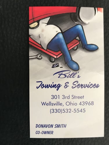 Bill’s Towing & Services in Wellsville, Ohio has been serving the Ohio Valley for nearly 30 years. We take care of all your automotive mechanical needs. Major & Minor Auto Repairs & Towing...Big & Small, We Do It All! Call Today!