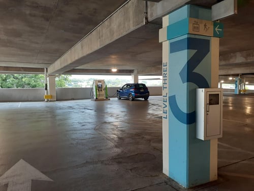 Two spots available on 2nd floor (south end near Pinstripes). Unable to use charger with Level 2 Honda Clarity (J1772). Should work fine with Chademo or Combo DC charging, and an EVgo account. Cables are very short, making it hard to reach certain cars, depending on slot availability. Gave 3 stars for having an EV charger on site, but not more b/c I couldn't use!
