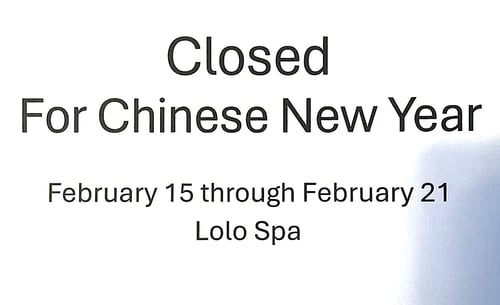 Closed For Chinese New Year, February 15 through February 21