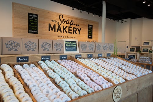 Make life smell wonderful one handmade soap at a time at Buff City Soap in Germantown, TN! From deliciously scented Bar Soaps and Body Butters, to colorful Bath Bombs and Body Scrubs, indulgent Shower Oils and Shave Bars, soothing Candles and more, we meticulously craft plant based products that are sure to transform ordinary moments into extraordinary experiences. Each of our handmade creations are made fresh daily, free of harsh chemicals and additives, and infused with only the best ingredients. Step into our world of goodies and treat yourself! Explore our bath and body products today at our Buff City Soap near you and delight your senses.