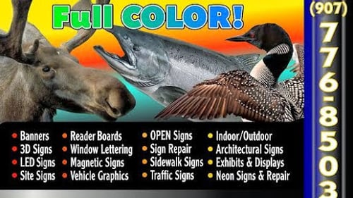 Alaska Sign Source, LLC offers a variety of signage including banners, changeable letter boards, directional signs, large format printed graphics, LED signs, magnetics, neon signs, painted signs, and view-thru window decals.