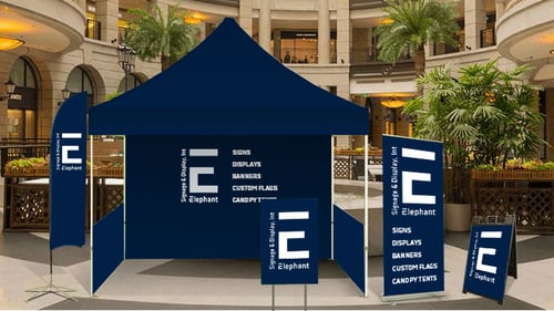 You can order signs & letters, LED-lit displays, window and floor signs, decals, custom banners, flags, table covers, canopy tents, posters, self-promotional products, COVID-19 posters & graphics, and warning & prevention signs.