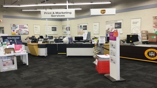 Customers can conveniently use the nearby UPS Access Point location for courier and delivery services when coordinating shipments related to their printing and marketing projects at Staples.