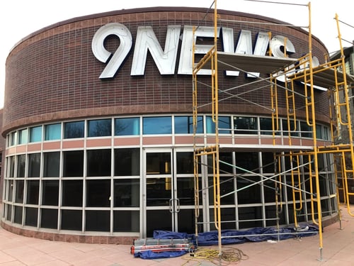 We offer a wide range of services for national rebrand projects throughout Colorado. Our receiving hours are 8:00 am to 4:00 pm, but special arrangements can be made if necessary. Every shipment is quality inspected upon receipt, and short-term storage of sign packages is available. Unloading trucks is done with a forklift, but lift gates are welcome. Transport is done by trailer or the bed of a crane truck. Our fleet includes a 72-foot crane with a 2-man platform and two Altec articulating 42-foot reach bucket trucks. Our UL electrical sign facility provides the flexibility to provide fabrication support for any sign modification or improvements necessary. We use the LVS low VOC PPG Mathews paint system to finish any components to your client's specification. If the project is a high-rise or mid-rise building, we offer swing stage and rappelling services to access the sign location.