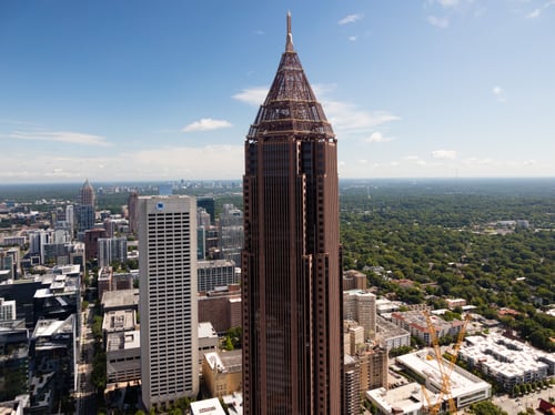 Bank of America Plaza skyscraper – standing at 1.3 million square feet and 55 stories tall – is the pinnacle of the Atlanta skyline as the city’s tallest building. The nationally recognized office tower faces its border streets at a 45-degree angle to maximize the views to the north and south. Located on Peachtree Street, Bank of America Plaza boasts a prime location, first-class amenities, and a top-tier and tech-focused tenant roster.
