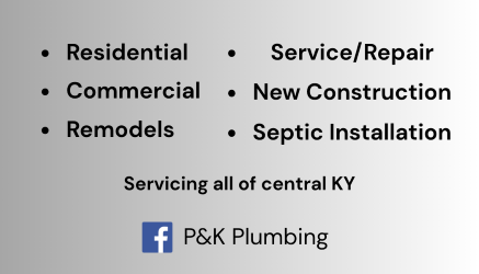 P and K Plumbing is your trusted local plumber serving Richmond, KY, and the surrounding areas. We provide professional and affordable plumbing services for homes and businesses, including septic system installation, leaky pipe repair, drain cleaning, and water heater services. Our team specializes in both standard and tankless water heater installation, as well as plumbing for remodels and new construction projects. Count on P and K Plumbing for reliable service, quality workmanship, and honest pricing in Richmond, Kentucky