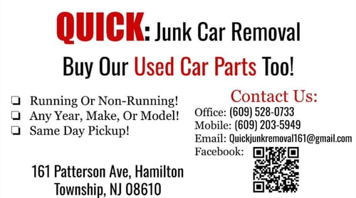 Quick Junk Car Removal is the go-to junk yard and auto salvage yard in Hamilton Township NJ for fast and reliable service. We offer cash for junk cars safe car scrap yard disposal and a wide selection of quality used auto parts.