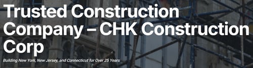 "CHK Construction Corp, based in East Elmhurst, NY, is a trusted Tri-State construction company serving New York, New Jersey, and Connecticut. With over 25 years of experience, our licensed team handles roofing, waterproofing, masonry, concrete work, and interior remodeling for both residential and commercial projects. Known for quality craftsmanship, reliability, and fair pricing, we deliver durable results you can trust. Whether it’s a roof repair, foundation fix, or full home renovation, call today for a free estimate and experience why clients across the Tri-State area rely on CHK Construction Corp."