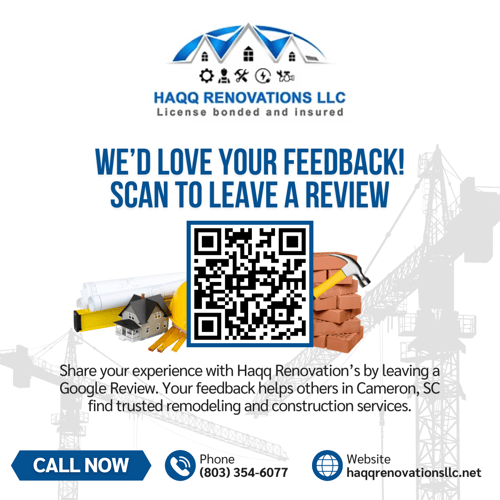 You can contact Haqq Renovation's by phone at +1 803-354-6077 or via email at stackhousekhidr@gmail.com.