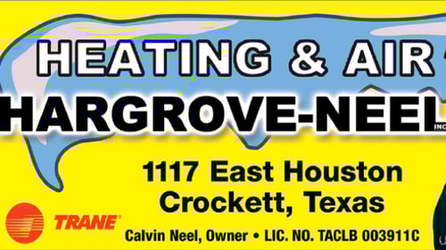 Since 1961, Hargrove-Neel has been Crockett’s trusted HVAC contractor, delivering expert heating and cooling solutions with honesty and care. We proudly serve Crockett, TX and surrounding areas with professional HVAC repair and installation services, including AC repair, furnace repair, HVAC replacement, ductwork, heat pump services, and indoor air quality solutions. As comfort specialists, we’re your one-stop shop for residential and light commercial HVAC service. Our experienced HVAC technicians complete every project on schedule and on budget, backed by superior customer service. For added peace of mind, we offer HVAC maintenance plans that help you save year-round. Call us today for reliable service built on decades of experience.