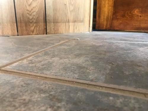 Signs include cracks in walls or floors, doors and windows that stick, uneven floors, and gaps around trim or cabinets.