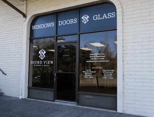 Bellevue Showroom open by Appointment Only Sound View offers professional window and door sales and installation. We work with popular brand names such as Milgard, Andersen, PlyGem, Jeld Wen, Stile windows and doors, Simpson, ThermaTru and Rogue Valley Doors. We do our own installations and do not subcontract out any work. We offer an open book approach to window and door sales, with a no pressure consultative relationship with our customers. Please note that this location is open by appointment only for the time being. Please call or email to schedule a time to meet someone at our Bellevue showroom or one of our other Seattle area location or to schedule and in home appointment. Serving Bellevue, Redmond, Kirkland, Issaquah, and Eastside
