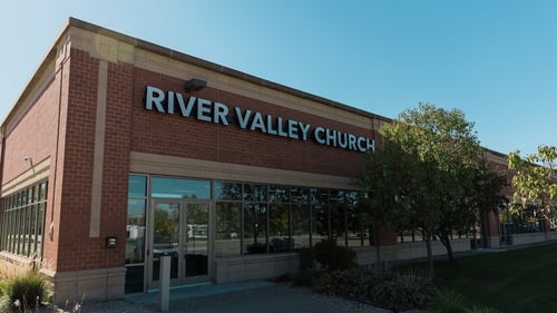 The church is associated with brands like River Valley Worship, Go Kids, YTH, Rob Ketterling, and Sparkle Women's Conference.