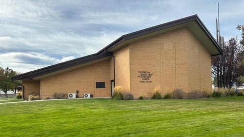 The church is located at 1402 South 570 West, Provo, UT 84601, USA, in a small U-shaped neighborhood.