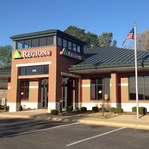 What nearby dining options can I visit before or after banking at Regions Bank? Sweet Honey Cafe & Bakery offers bakery items and smoothies, and Dunkin' provides coffee and donuts, both nearby the bank.