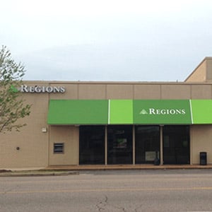 This Regions Bank branch offers checking and savings accounts, loans, credit lines, business services, check cashing, and Western Union money transfers.