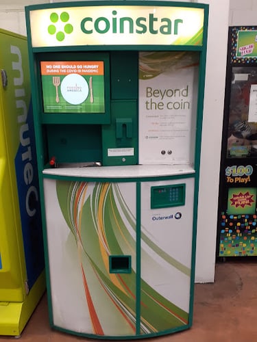 Coinstar offers a variety of coin services, including turning your coins into cash, NO FEE eGift cards and charity donations. Coinstar also offers the opportunity to turn cash into digital funds – transferring into your bank account or buying cryptocurrency. Services and products may vary by kiosk and retail location.