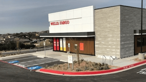 Are there nearby retail or service stores close to Wells Fargo Bank that customers might visit?
