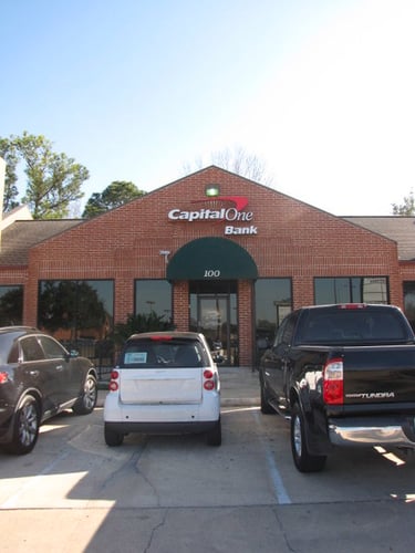 This Capital One Bank branch offers services including ATM access, branch drive-up banking, night drop, and walk-up ATM.