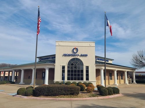 Nearby banks include LegacyTexas and another Prosperity Bank location, as well as a 7-Eleven with banking services.