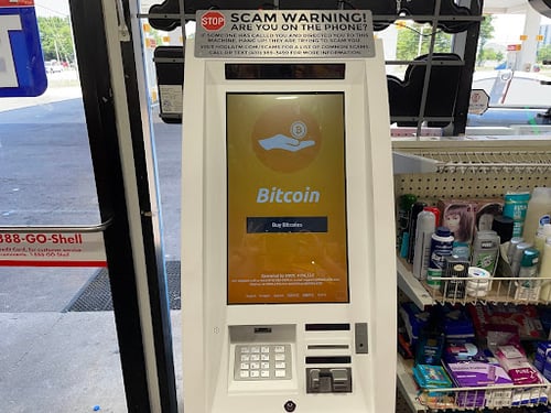 Located inside of Shell. You can buy bitcoin with cash here.