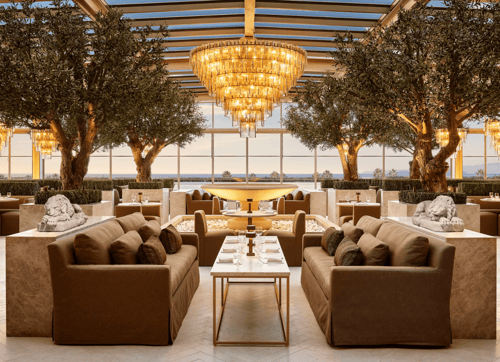 The RH Ocean Grill is located on the rooftop of RH Newport Beach, The Gallery at Fashion Island. Enjoy a menu of seafood and caviar specialties, along with a selection of signature salads and classics from our hearth. Dine in a year-round skylit garden with heritage olive trees, sparkling chandeliers, a cascading center fountain and panoramic views of the California coastline.