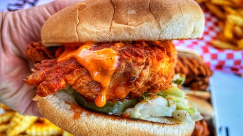 This place is decently one of my favorite places to go when I’m hungry, especially for lunch. They have great food and fast service; such a friendly place to go to. The workers are very nice, the food is very, very tasty, and their Kluckin sandwich is very good. I have to grab two combos for me and my brother, and don’t get me started with their sauce. The klucin sauce is so, so good, so because of the flavor, I had to buy their jar of kluckin sauce for next time I go out to eat and have leftovers. Their quesadillas are very good too; they have little chicken bites, which are very good. Their combos come with fries, and let me tell you one thing, their fries are well seasoned with so much flavor, which goes with their klucin sauce. This is one hidden gem in Santa Clarita, and if you haven’t yet eaten here before, it’s a must.