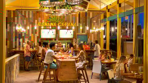 Cool off with a refreshing libation at this walk-up bar that offers tropical concoctions like the signature Island Time Seasonal Margarita, Pineapple Mule, Jamaican Frozen Runner, and Banana Cabana—plus cold beer, sangria and nonalcoholic options. Hungry for some quick, tasty bites? Dine-in and enjoy our zesty jerk chicken wings, crispy coconut shrimp, signature Banana Cabana Burger and more.