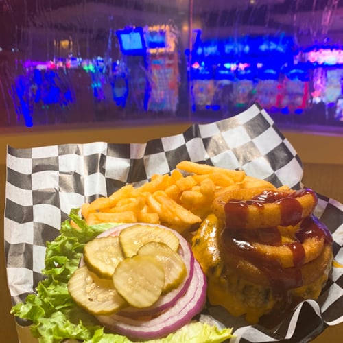 Awesome food and our server Michelle was amazing. Burgers, fries, onion rings, pretzels, and cake shake.simply amazing. We'll have to come back just to eat dinner .