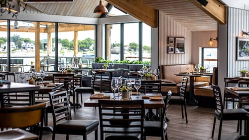 Yes, the restaurant features ample outdoor seating with a 116-seat outdoor deck overlooking the Merrimack River, suitable for al fresco dining in warm weather and enclosed during colder months.