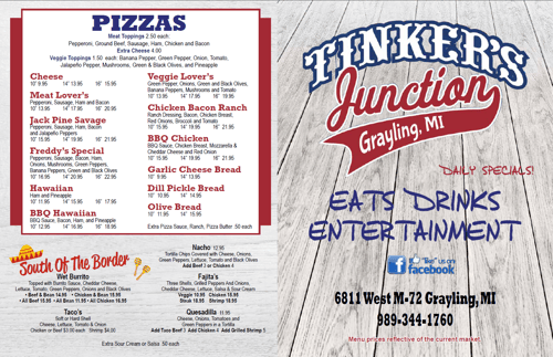 My wife and I were finally able to stop by Tinker’s Junction on Wednesday for an early afternoon lunch. Our server Paige gave us the rundown on all the fun they have in their weekly lineup. The daily food specials, and the activities that allow customers to engage and enjoy. Karaoke, Trivia, live bands, indoor corn hole, and other special events are bound to create a great time out with friends and family. They even host larger gatherings for group get-togethers. We will definitely be back for some of that as our schedule allows since we come from the Mio area.
