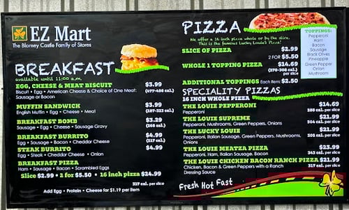 Escape your daily routine at Hilltop EZ Mart, an oasis of convenience catering to all your needs. Imagine a haven where you can fill up your tank with BP gas, indulge in the deliciousness of Lucky Louie's pizza, or savor the succulent flavors of Chester's Chicken.