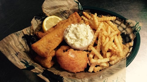 They offer a variety of items including pizza, sandwiches, seafood baskets, wings, burgers, salads, adult beverages, and have a kids menu as well.