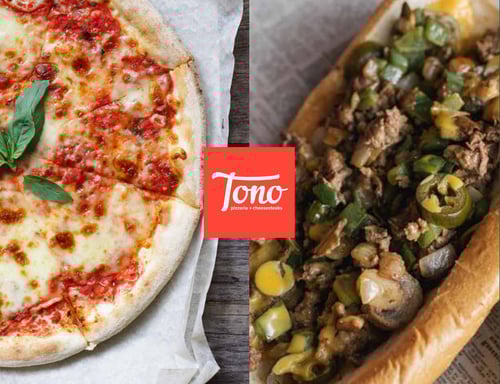 What type of food does Tono Pizzeria + Cheesesteaks specialize in?