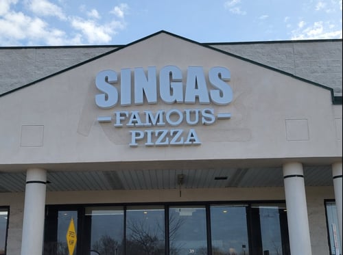 Where is Singas Famous Pizza located?