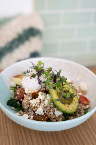 Bluestone Lane offers high-quality coffee, tea, juices, avocado smash, granola, and café fare, including wellness lattes and organic, vegetarian options.