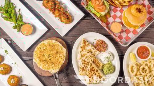 Good burger, good wings, calamari, great vibes with indoor and outdoor seating. But the Mac n cheese was grainy and had bacon on top which is not my favorite…. Bathrooms are scary
