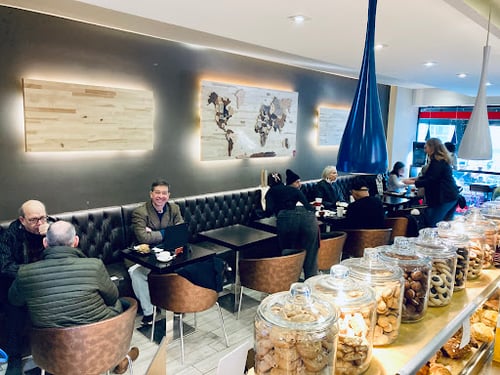 Ultramodern European-style cafe featuring premium Italian coffee & espresso drinks & pastries.