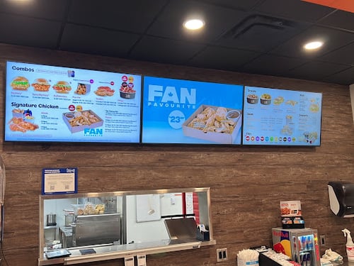 Counter-serve choice known for its breaded chicken, wings, wraps & signature potato wedges.