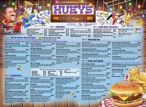 You can view the menu at https://hueyburger.com/menus/ and order online at https://hueyburger.com/order-online-now/.