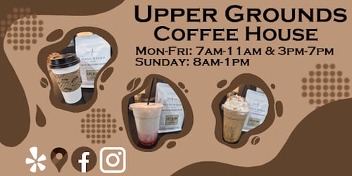 Upper Grounds Coffee House is designed to serve the local faith community while remaining open and inviting to all. We offer expertly crafted espresso beverages, freshly brewed coffee, teas, and pastries sourced from local bakers.