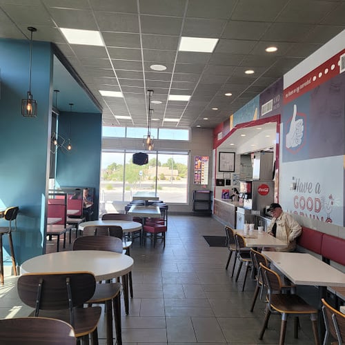 Burgers, chicken, tacos & breakfast items fill out the menu at this fast-food chain.