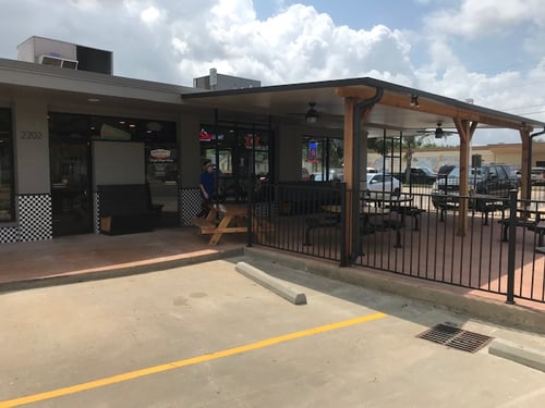 Nearby dining options include Texas Seafood, Firehouse Subs, LaVaca BBQ, and Theresa's Sari - Sari Store which offers Asian cuisine.