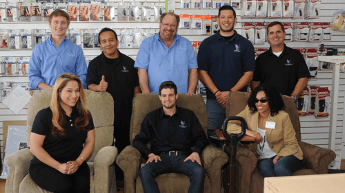 They carry brands including Pride, Drive, Harmar, Invacar, Sunrise Medical, Trilift, Nova Ortho-Med, Golden Technology, Tuffcare, Shoprider, and Pedifix.