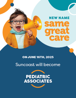 Pediatric Associates Largo (formerly Suncoast Pediatrics) is dedicated to putting patients’ health first and delivering exceptional pediatric care. As the largest private pediatric practice in Florida, we proudly serve families across South Florida, Tampa, Orlando, Jacksonville, and the Panhandle areas. Our mission is to provide extraordinary care with a focus on your child’s health, growth, and well-being. Visit us today to experience compassionate, high-quality pediatric care close to home.