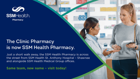 We are now SSM Health Pharmacy, formerly The Clinic Pharmacy, located at 3210 Kethley Road in Shawnee. We appreciate the trust and loyalty you have shown us over the years. Our pharmacists, technicians and staff will remain the same and continue to take the time to care about you and your health needs so that you experience customer service at its best. We look forward to being a part of your health care team well into the future!