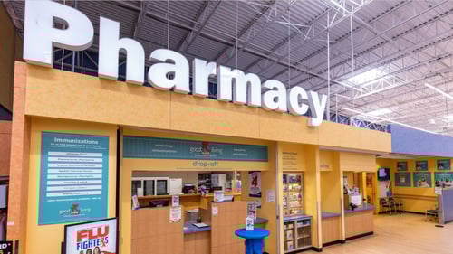 What supermarkets and stores are located near H-E-B Pharmacy?